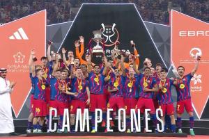 体育资讯01月12日讯 西班牙超级杯决赛,巴萨3-2战胜皇马夺冠。