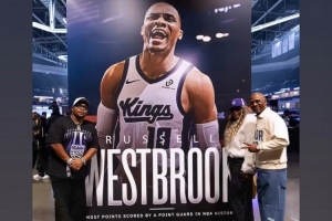在这场比赛中,国王官方为威少举办仪式,庆祝他此前加冕NBA历史控卫得分王。