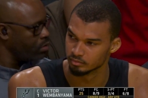 第一节,马刺球星文班亚马火力全开,打了8分钟9投8中,三分4中3、罚球8中6砍下25分3篮板1抢断1盖帽,正负值+13。