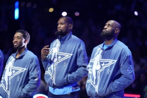 记者问道:“与勒布朗·詹姆斯、科怀·伦纳德以及那些你对抗了这么久的球员同场竞技,你感觉如何?”