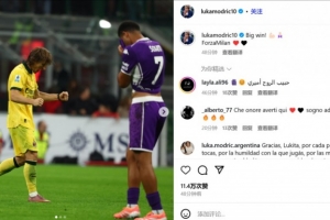 莫德里奇晒出了自己的赛场照,配文写道:“伟大的胜利!Forza Milan。”