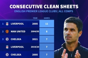 体育资讯10月31日讯 阿森纳在本月英超取得6战全胜且1球未失,《转会市场》数据统计显示枪手也位列英超球队各项赛事历史最长零封榜第10。