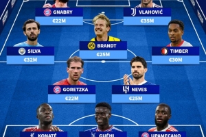 后卫:科纳特(利物浦)、格伊(水晶宫)、于帕梅卡诺(拜仁)