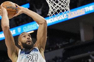 第一节,森林狼中锋戈贝尔高效发挥,打满12分钟3投3中,罚球4中4拿到10分6篮板1助攻1抢断,正负值+6。