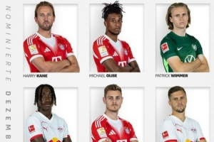 体育资讯12月31日讯 德甲官方评选出12月最佳球员候选名单,其中凯恩、奥利塞、斯坦尼西奇等三位拜仁球员在列,具体如下: